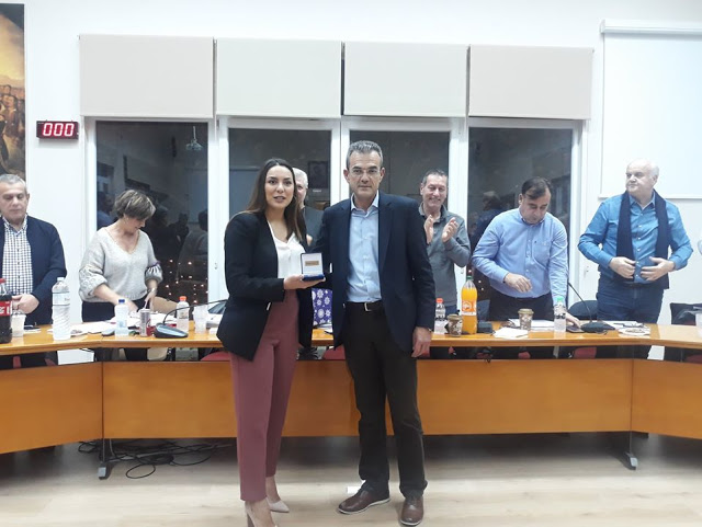 Σύσσωμο το συμβούλιο συνεχάρη την κοπέλα που παραβρέθηκε με όλη της την οικογένεια και παρέλαβε από τον δήμαρχο μία αναμνηστική πλακέτα.
