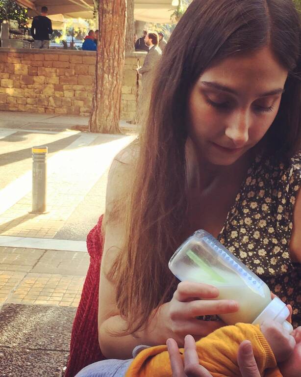 Η Φωτεινή λοιπόν απαθανάτισε την στιγμή, όπου ο σύντροφός της κρατά τον μπέμπη αγκαλιά και τον ταΐζει!