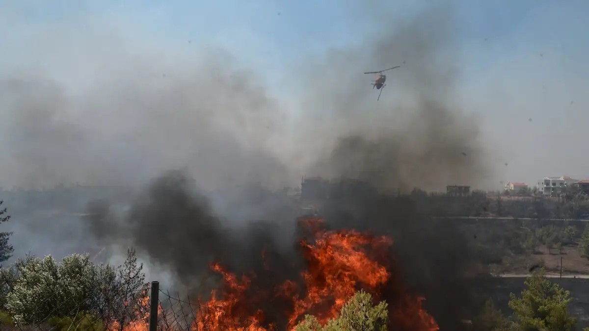 Μάχη με τις φλόγες αλλά και τους θυελλώδεις ανέμους δίνουν και 2 αεροσκάφη.