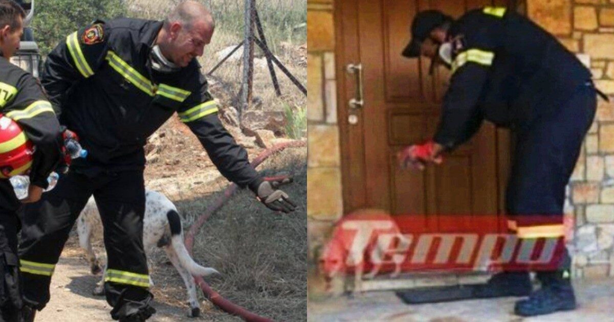 Μέσα στον πανικό ένα μικρό σκυλάκι, έξω από κατοικία που υπέστη ζημιές από τις φλόγες, τράβηξε το βλέμμα ενός πυροσβέστη. Ο τελευταίος σταμάτησε για να του δώσει λίγο νερό, σύμφωνα με το tempo24news.gr. To ζώο άρχισε κατευθείαν να πίνει, έχοντας μείνει για ώρες μέσα στις υψηλές θερμοκρασίες και τις φλόγες.