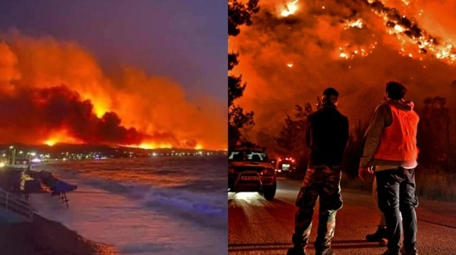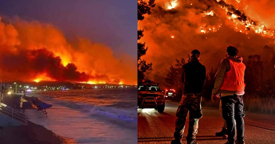 Η φωτιά στην Κορινθία κατάκαιγε τα πάντα για δεύτερη συνεχόμενη νύχτα, με τις επίγειες πυροσβεστικές δυνάμεις να καταβάλλουν υπεράνθρωπες προσπάθειες να αποτρέψουν τις φλόγες να φτάσουν σε σπίτια, εξαιτίας των συνεχών αναζωπυρώσεων, λόγω των ισχυρών ανέμων.