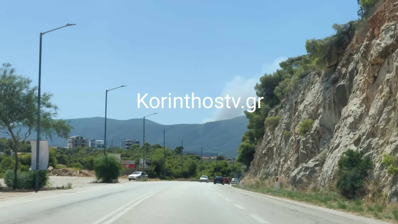 Στις εικόνες του korinthostv.gr, φαίνεται ο καπνός από τη φωτιά που καίει δασική έκταση. Αν κριθεί αναγκαίο, οι δυνάμεις της Πυροσβεστικής θα ενισχυθούν από νόμους της Περιφέρειας Πελοποννήσου.