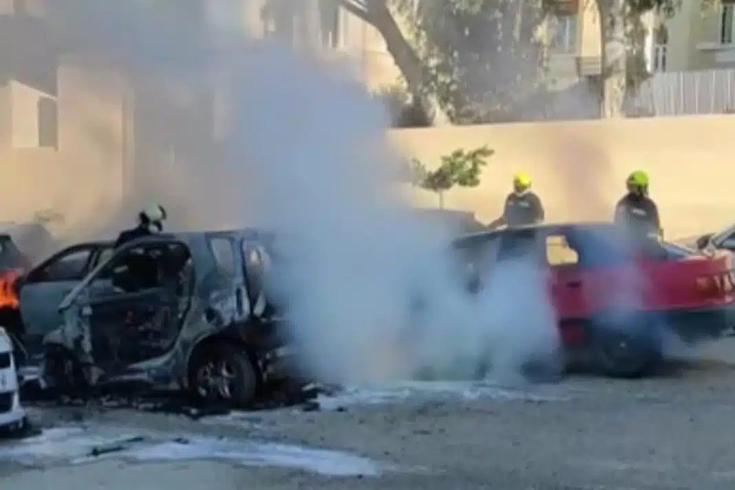 Η φωτιά έχει ξεσπάσει σε οχήματα, ενώ στο σημείο επιχειρούν 8 πυροσβέστες με τρία οχήματα.