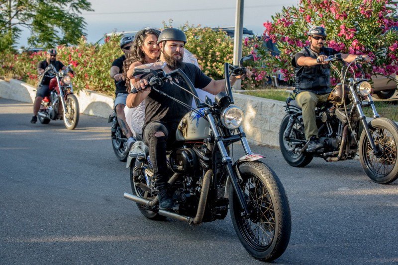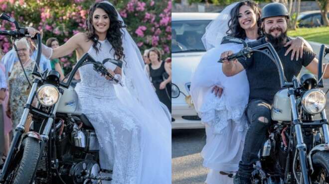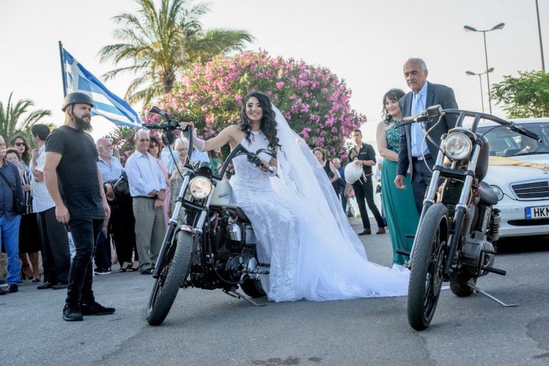 Ο Γιώργος Τούλης περίμενε την αγαπημένη του στην εκκλησία, όμως, η είσοδός της, δεν ήταν η αναμενόμενη. Η Μαρίνα Στεφανάκη πραγματοποίησε την είσοδό της, με μηχανές Harley Davidson και τον σύλλογο Bikers Club Κρήτης. Όπως ήταν φυσικό, η είσοδος της νύφης, ξεσήκωσε τους καλεσμένους. Ήταν πραγματικά, ένα γεγονός, που άφησε θετικές εντυπώσεις στους παρευρισκόμενους και που σίγουρα θα το θυμούνται για χρόνια…