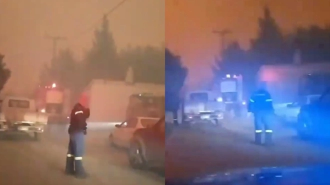 Ένα συγκλονιστικό βίντεο από την φωτιά στα Γεράνεια Όρη δημοσιοποίησε ένας εθελοντής πυροσβέστης. Το βίντεο δείχνει καρέ καρέ την ώρα που η φωτιά περικυκλώνει πυροσβέστες και πολίτες. Στο σημείο εκείνο εγκλωβίστηκαν τουλάχιστον τρία οχήματα με πυροσβέστες και εθελοντές, αλλά και δέκα πολίτες.