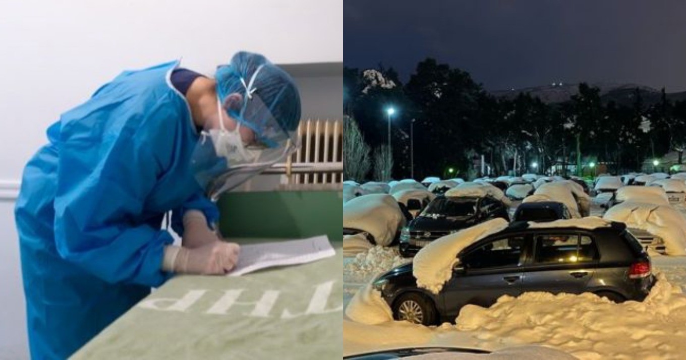 Εκτός από τις αντίξοες συνθήκες και την ανείπωτη κόπωση λόγω της πανδημίας, οι εργαζόμενοι, αλλά και οι ασθενείς στην μονάδα covid του νοσοκομείου Σωτηρία, έπρεπε να αντιμετωπίσουν και τα χιόνια.