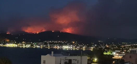 Δύσκολη αναμένεται η νύχτα για την Εύβοια, καθώς το πύρινο μέτωπο παραμένει ενεργό, που ξεκίνησε από το βουνό πάνω από το Αφράτι, κινείται απειλητικά προς το χωριό Καμάρι.
