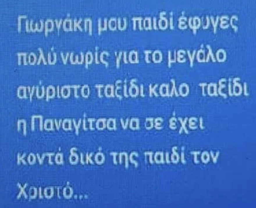 «Γιωργάκη μου, παιδί έφυγες πολύ νωρίς για το μεγάλο αγύριστο ταξίδι. Καλό ταξίδι, η Παναγίτσα να σε έχει κοντά, δικό της παιδί τον Χριστό», έγραψε χαρακτηριστικά η απαρηγόρητη μητέρα.