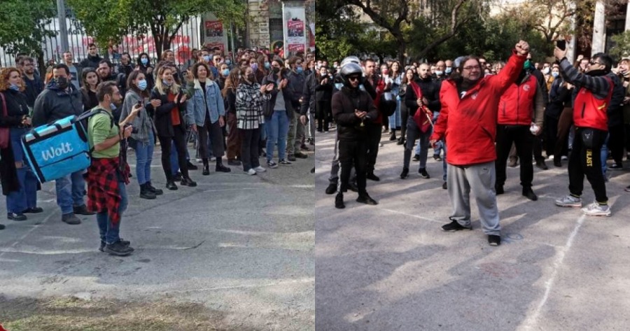 Συγκεκριμένα, όταν στο χώρο του Πολυτεχνείου έφτασαν εργαζόμενοι της efood και της Wolt στο πλαίσιο της κινητοποίησης που πραγματοποιούν από κοινού με το Συνδικάτο Επισιτισμού – Τουρισμού, δέχτηκαν τα δυνατά χειροκροτήματα και συνθήματα των συμμετεχόντων.
