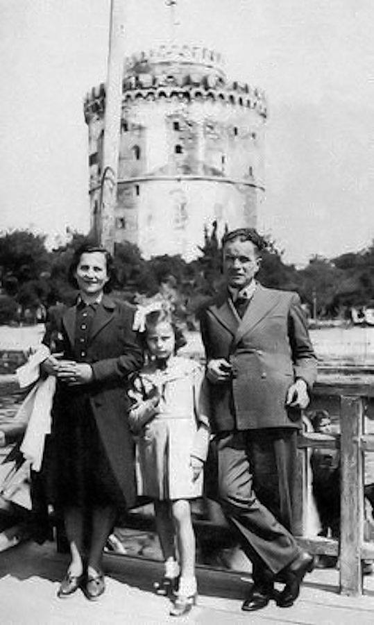 Η Τζένη Καρέζη με τους γονείς της μπροστά στον Λευκό Πύργο .Στις αρχές της δεκαετίας του 1940