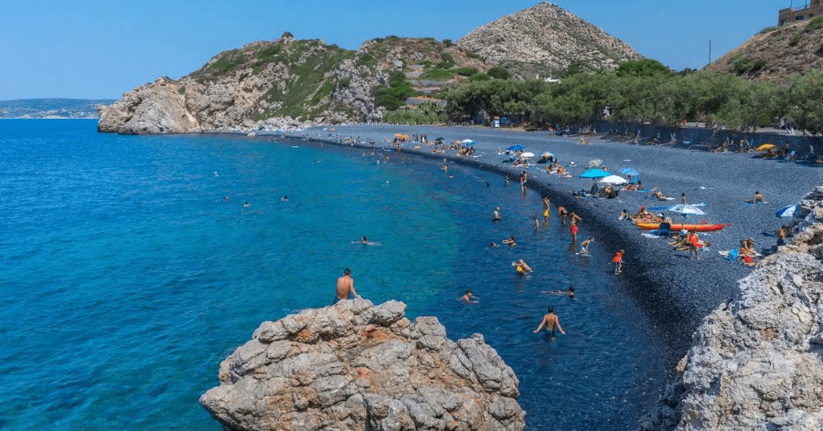 Σε ό,τι αφορά τις παραλίες, αναμφίβολα η πιο ξεχωριστή και συναρπαστική ολόκληρου του νησιού είναι τα Μαύρα Βόλια. Αυτά, επιβεβαιώνουν την ονομασία τους.