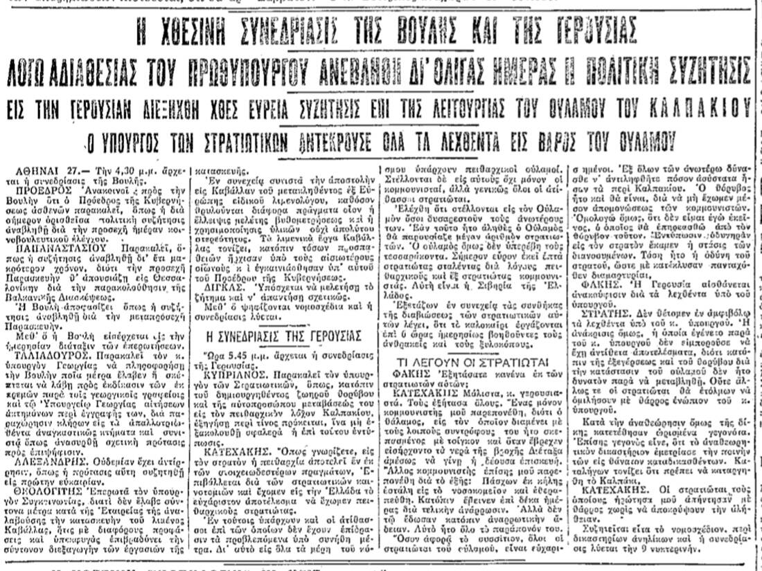 Πρωθυπουργός Ελευθέριος Βενιζέλος: Πριν ακριβώς από 107 χρόνια και πιο συγκεκριμένα στις 26 Ιανουαρίου του 1931, ο πρωθυπουργός της Ελλάδας, Ελευθέριος Βενιζέλος, απουσίαζε από το κοινοβούλιο. Το ίδιο συνέβαινε και με τα μισά μέλη του υπουργικού συμβουλίου. Όλοι ήταν δικαιολογημένα απόντες, καθώς είχαν γρίπη.