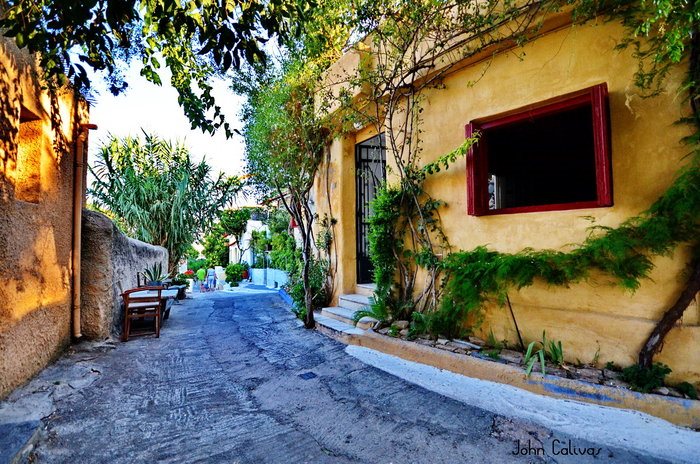 Με οδηγό την αγάπη σας για εξερεύνηση και με αποσκευές μια φωτογραφική μηχανή, ταξιδέψτε μέσα στην ίδια σας την πόλη νιώθοντας την αύρα του Αιγαίου και τη μυρωδιά μιας άλλης εποχής. Καφές στα σκαλάκια. Εκτός από τα ασβεστωμένα σοκάκια, τους βασιλικούς και τις γλαστρούλες στις αυλές των σπιτιών της συνοικίας, το βλέμμα σας θα προσελκύσουν τα όμορφα καφενεδάκια.