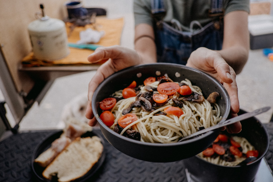 Πάντα δίνουμε μεγάλη βαρύτητα στο φαγητό, είτε αυτό είναι το μεσημεριανό στο σπίτι καθημερινά είτε ένα γεύμα κάπου στο βουνό μέσα στο campervan. Είμαστε και οι δύο χορτοφάγοι κι αυτό μας έχει δώσει την ευκαιρία να πειραματιστούμε και να γνωρίσουμε νέες γεύσεις.