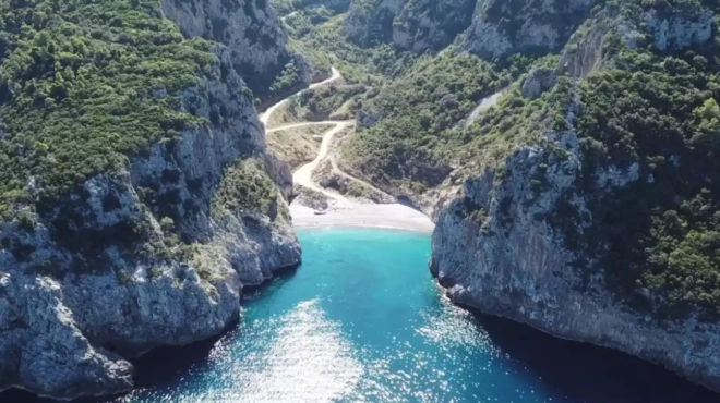 Όταν φτάσετε εκεί, θα αντικρίσετε έναν παραθαλάσσιο κολπίσκο με ψιλό βοτσαλάκι και αμμουδιά. Δύο μεγάλοι βράχοι, που αγκαλιάζουν τα γαλάζια νερά αριστερά και δεξιά, προσδίδουν στο τοπίο μια εντυπωσιακή άγρια ομορφιά.