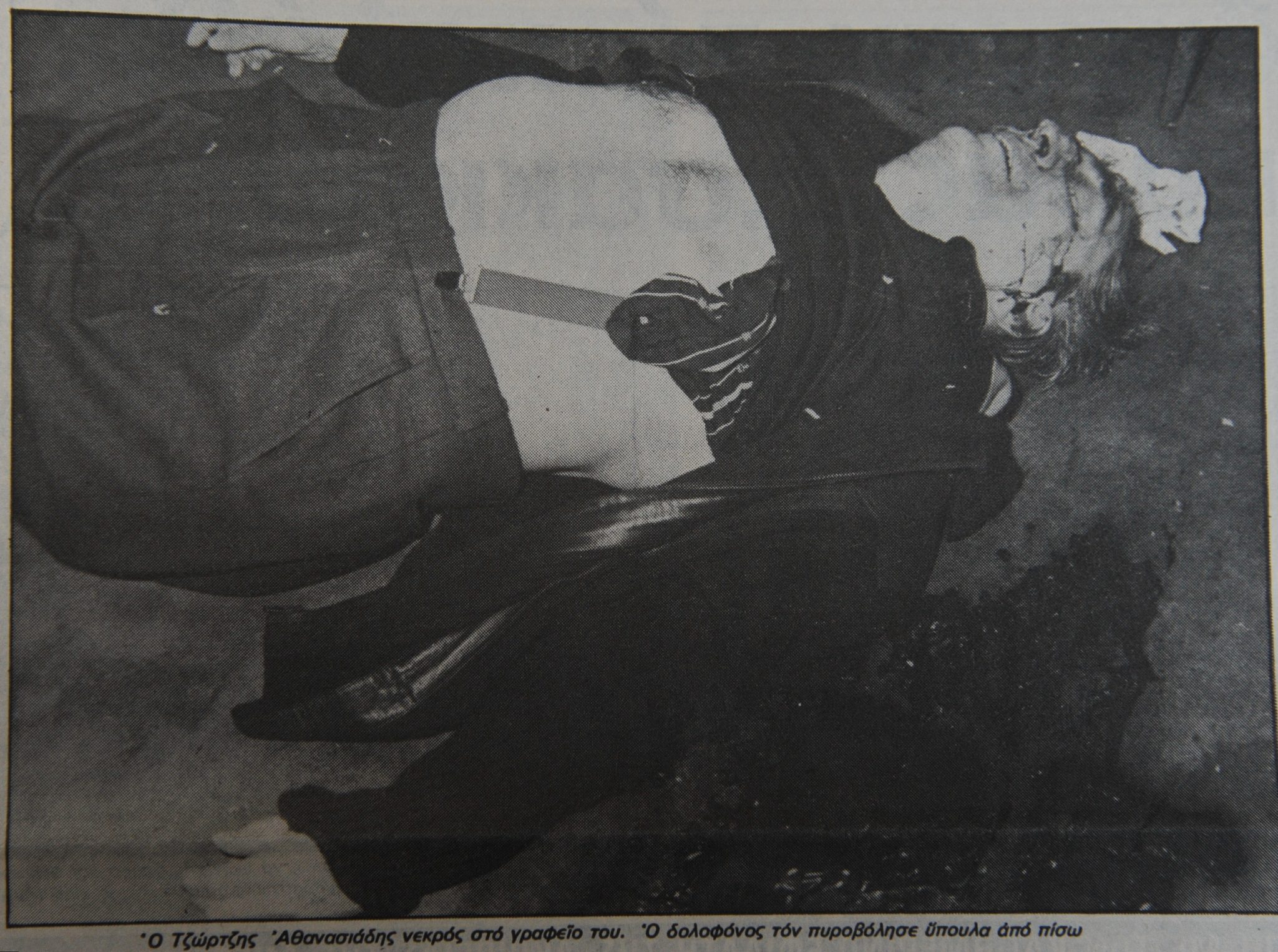 Πιο συγκεκριμένα, στις 19ης Μαρτίου 1983, το βράδυ, ο Τζώρτζης Αθανασιάδης εκδότης της εφημερίδας «Βραδυνή» δολοφονήθηκε με τρεις σφαίρες μέσα στο γραφείο του.