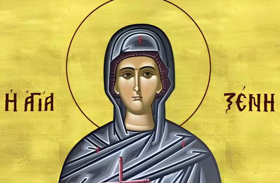 Αἱμάτων ῥοαῖς τῶν σῶν ἐχθρὸν ἀπέπνιξας, Ξενία τὸ πῦρ, τῆς πλάνης ἐναπέσβεσας, καὶ Χριστῷ παρίστασαι· ὅθεν πόθῳ πάντες σοὶ κράζομεν· ἐκτενῶς μὴ παύσῃ ἀεί, πρεσβεύουσα Μάρτυς ὑπὲρ πάντων ἡμῶν.