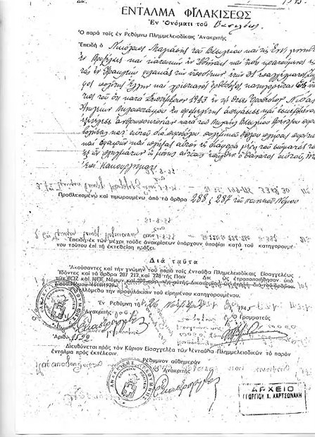 Ο “Τηγανίτης” Κρητικός, Γιώργος Βρέντζος, σκότωσε τον δοσίλογο δολοφόνο του αδελφού του, Νίκο Μπαγιάση, με μαχαίρι που είχε κρύψει με τσιρότο κάτω από το δικηγορικό έδρανο, πριν από 75 χρόνια.