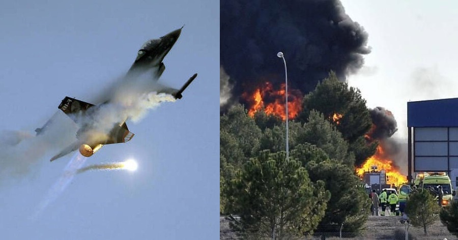 Οι εικόνες κάνουν αμέσως τον γύρο του πλανήτη και δείχνουν το αποτέλεσμα της πτώσης του F-16D, ελάχιστα δευτερόλεπτα μετά την απογείωσή του, πάνω σε άλλα αεροπλάνα που βρίσκονταν στην βάση της Αλμπαθέτε.