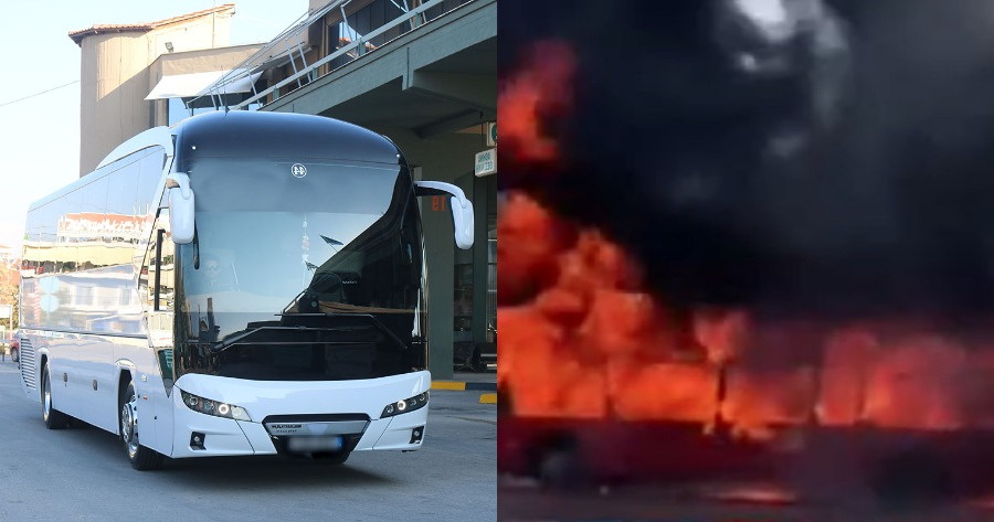 ΚΤΕΛ Σερρών: Πρόκειται για ένα λεωφορείο, το οποίο κάηκε ολοσχερώς – Η τρομακτική στιγμή που τυλίγεται στις φλόγες.