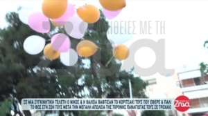 Χρωματιστά μπαλόνια αφέθηκαν να «ταξιδέψουν» ψηλά στον ουρανό, μετά το μυστήριο. «Της άρεσαν πολύ τα μπαλόνια της μεγάλης μας. Και της τα έστειλε η αδελφούλα της», είπε συγκινημένη η Θάλεια.