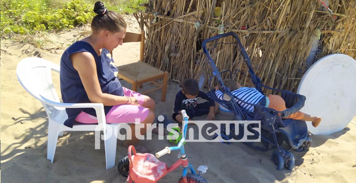 Εκεί, που άλλοι περνούν ξέγνοιαστες στιγμές, που φτιάχνουν καλύβες για έναν ίσκιο, για ένα πάρτι, μια οικογένεια έφτιαξε το… σπιτικό της στην άμμο, σε συνθήκες αφόρητης ζέστης την ημέρα και υγρασίας την νύχτα και με τους κινδύνους να μην λείπουν… Δύσκολες μέρες ζει η οικογένεια της 42χρονης κας Κυριακής Σταμνιώτη και του 44χρονου συζύγου της. Τρία παιδιά, τρία αγοράκια, 4, 2,5 και ενός αντίστοιχα και με την 42χρονη να μπαίνει στον 6ο μήνα κύησης, οι στιγμές στην παραλία της Κουρούτας, στην καλύβα, είναι απάνθρωπες.