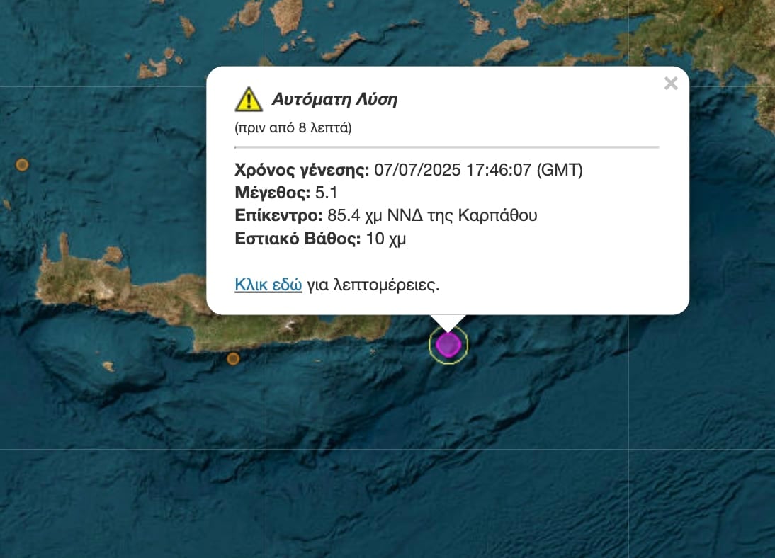 Ισχυρός σεισμός 5,1 ρίχτερ στην Κρήτη