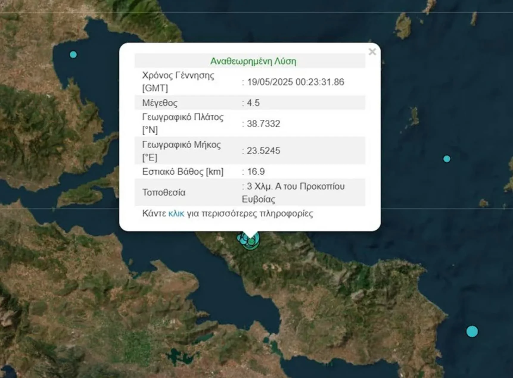 Σεισμός 4,5 Ρίχτερ τα ξημερώματα στη Βόρεια Εύβοια – Η ισχυρή δόνηση ξύπνησε και την Αθήνα