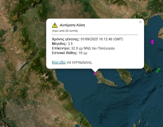 Η σεισμική δόνηση ήταν μεγέθους 3,5 Ρίχτερ, σύμφωνα με την αυτόματη λύση του Γεωδυναμικού Ινστιτούτου και σημειώθηκε στις 19:12.