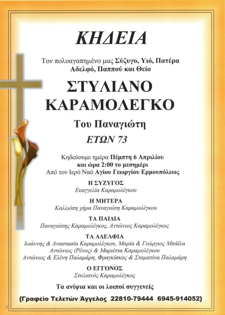 Την Πέμπτη το μεσημέρι, συγγενείς και φίλοι τον αποχαιρέτησαν στον Ιερό Ναό Αγίου Γεωργίου, στο Κοιμητήριο της Ερμούπολης.