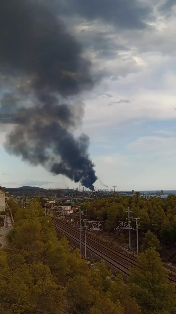 Η περιοχή έχει πνιγεί από πυκνούς μαύρους καπνούς, οι οποίοι είναι ορατοί σε απόσταση πολλών χιλιομέτρων. Μαζί με την Πυροσβεστική στο σημείο επιχειρεί και η ομάδα κατάσβεσης του διυλιστηρίου.