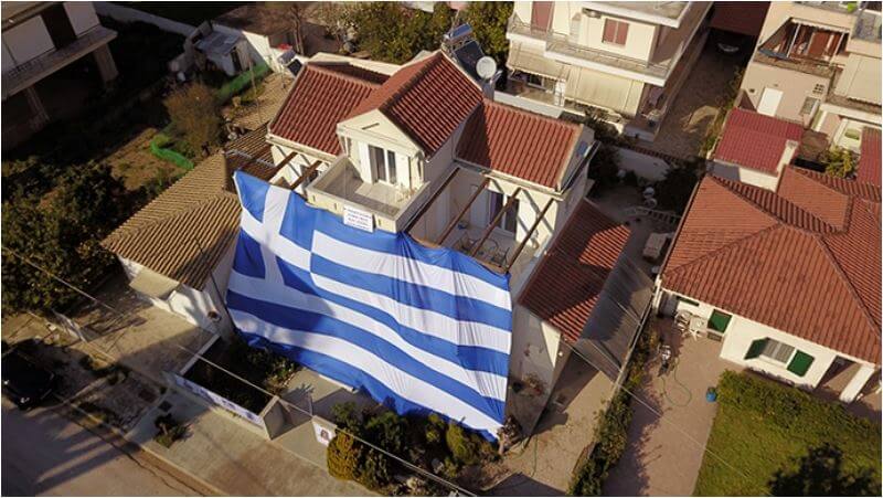Ελληνική σημαία: Η 28η Οκτωβρίου είναι μια πολύ σημαντική εορτή της Ελλάδας. Οι περισσότεροι γιορτάζουμε το πανηγυρικό «Όχι» με ξεχωριστούς τρόπους. Ένα σύνηθες έθιμο είναι να κρεμάμε μια σημαία στο σπίτι μας. Ο Γιάννης Αθανασόπουλος αποφάσισε να κάνει το κάτι παραπάνω. Κάλυψε το σπίτι του στην Νέα Κίο με μια τεράστια σημαία 140 τ.μ. Έτσι δεν αρκέστηκε στις άπλες σημαιούλες που οι περισσότεροι βάζουμε.