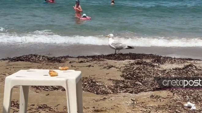 «Ελαφροχέρης» αποδείχθηκε ένας γλάρος στο Ηράκλειο της Κρήτης καθώς έκλεψε κρουασάν από λουόμενους.