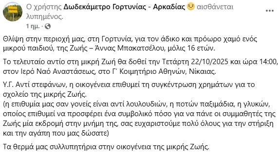 «Έκατσε λοιπόν στο πεζοδρόμιο και γονάτισε κάτω και χτύπησε πίσω σε μια τζαμαρία, αλλά ούτε η τζαμαρία έσπασε, ούτε αιμάτωμα είχε το παιδί ούτε τίποτα… “Έφυγε” αμέσως το κοριτσάκι μας, 16 ετών κοπελάρα, σήμερα κάναμε την κηδεία της και ακόμη δεν μπορώ να γυρίσω σπίτι μου», κατέληξε ο παππούς της.