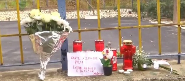 Ο μικρός Μάνος έγραψε «κάντε χώρο εκεί ψηλά. Έρχεται να παίξει ο Βασίλης». Στο σχολείο από το πρωί, συμμαθητές του παιδιού, εκπαιδευτικοί και γονείς σπεύδουν να αφήσουν λίγα λουλούδια και ένα κεράκι στη μνήμη του.