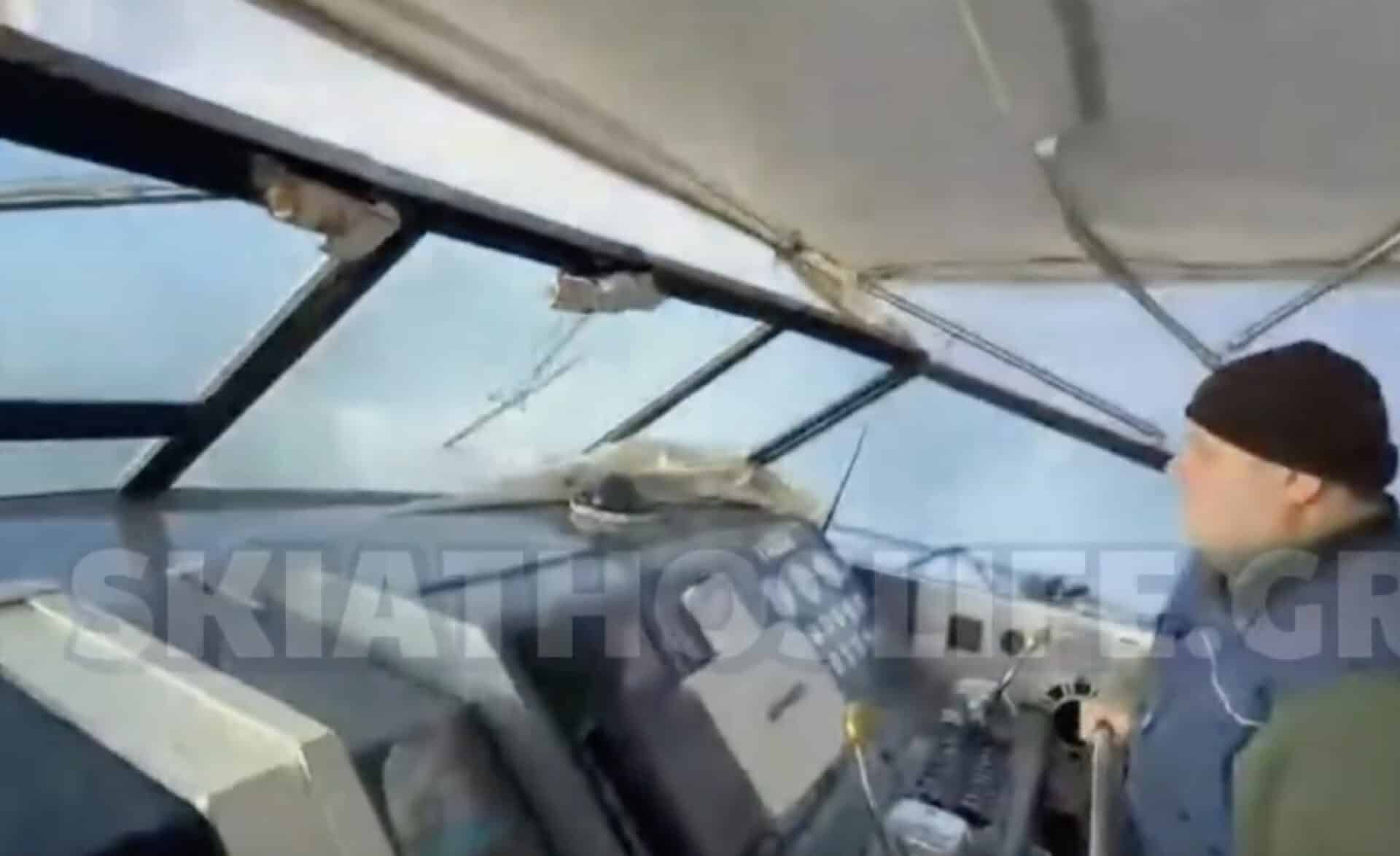 Την ευθύνη της θαλάσσιας μεταφοράς ανέλαβε, σύμφωνα με το skiathoslife.gr, ο καπετάνιος του επιβατηγού σκάφους–τράτας «Ζαχαρένια», Δημήτρης Διολέττας, ο οποίος πραγματοποίησε το δρομολόγιο παρά τις ιδιαίτερα δυσμενείς καιρικές συνθήκες που επικρατούσαν στην περιοχή.