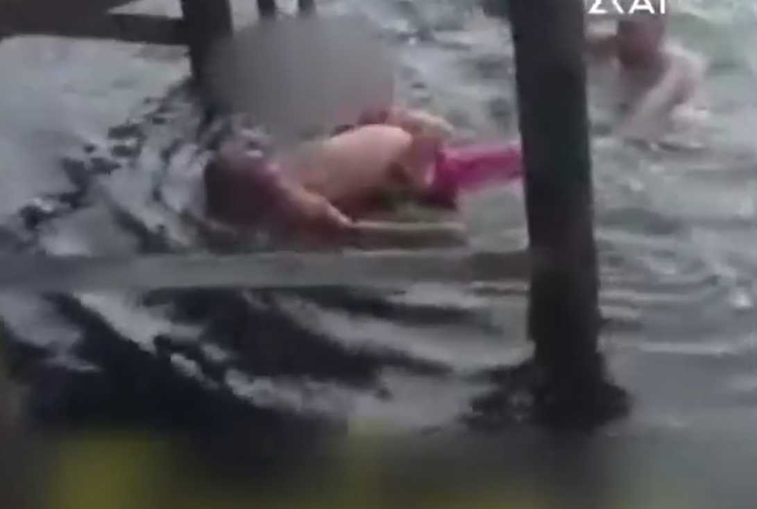 Η στιγμή που ανασύρεται ο Γιάννης από τα θολωμένα νερά, ακριβώς μετά το ατύχημά του