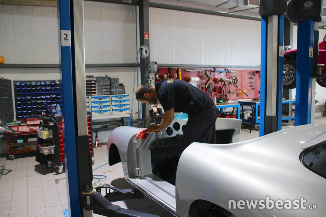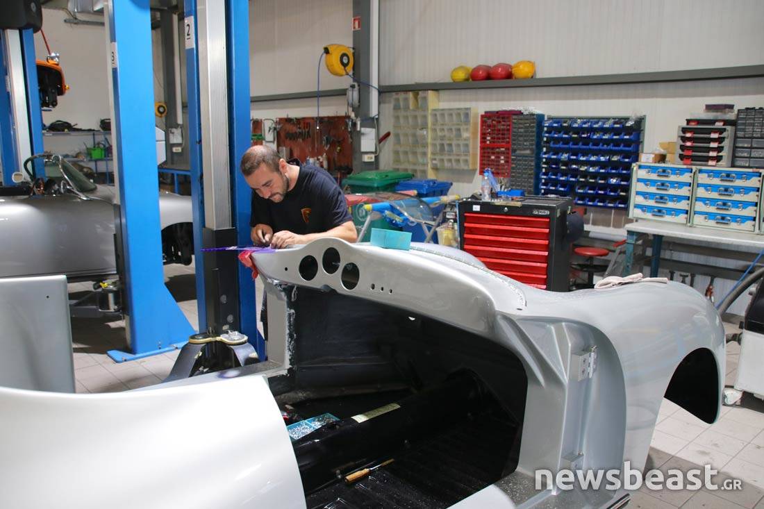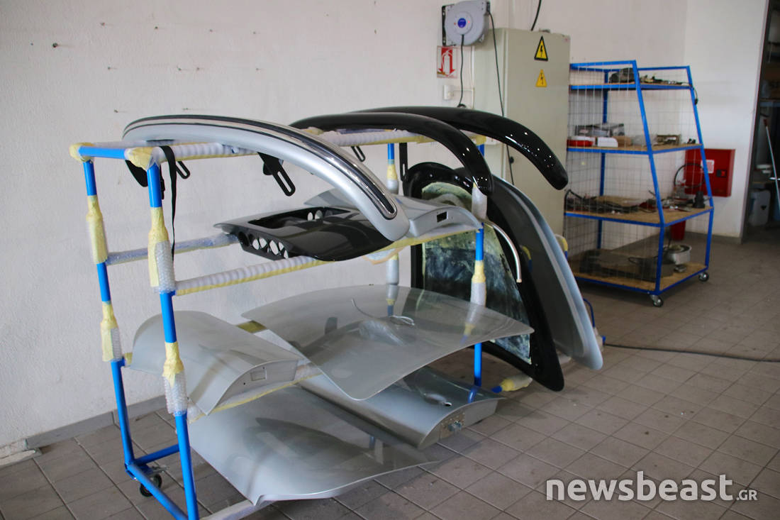 «Η παραγωγή φτάνει μέχρι και 25 αυτοκίνητα το χρόνο. Εάν έχουμε τα εξαρτήματα που χρειαζόμαστε εδώ στις εγκαταστάσεις και δεν χρειάζεται να περιμένουμε τότε μπορούμε να έχουμε ετοιμοπαράδοτο ένα αυτοκίνητο μέσα σε 2-3 μήνες», μας λέει με περηφάνια ο Σωκράτης.