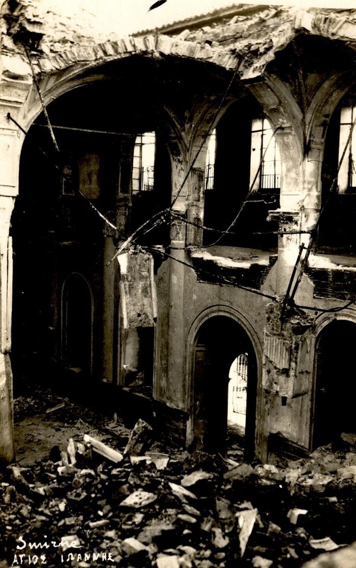 – Οι εμπρησμοί κατέστρεψαν τα 3/5 της έκτασης της Σμύρνης αφήνοντας άθικτη την τουρκική συνοικία. Από τις φωτιές δεν γλίτωσαν ούτε τα πολυτελή κτίρια της πόλης, όπως το Sporting Club, τα κομψά ξενοδοχεία του Και, τα εστιατόρια και οι επαύλεις. Από τις 46 ορθόδοξες εκκλησίες σώθηκαν οι τρεις.