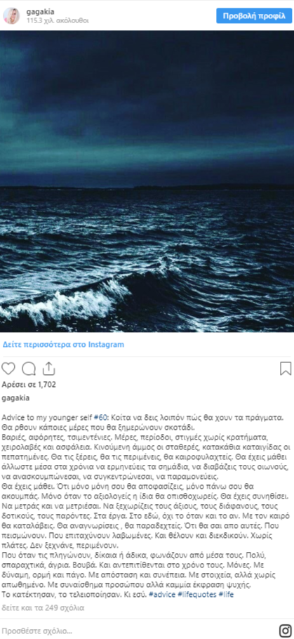 Κατερίνα Γκαγκάκη: Η ανάρτηση της στο instagram