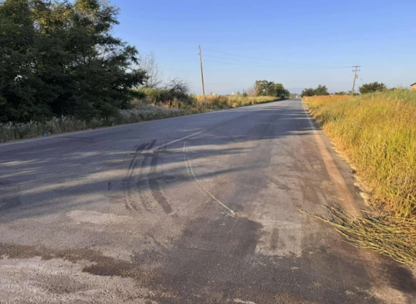 Τα σημάδια που άφησαν τα δύο οχήματα μετά τη σύγκρουση παραμένουν χαραγμένα στο οδόστρωμα.