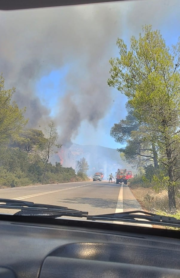 H φωτιά έχει ξεσπάσει δίπλα στην εθνική οδό Επιδαύρου – Κορίνθου.