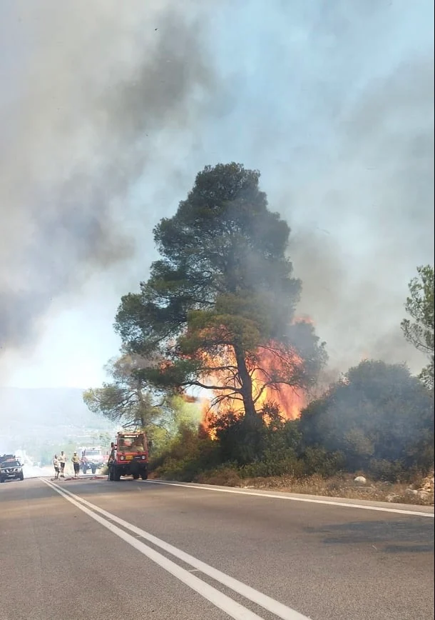 Νωρίτερα, ένα όχημα εθελοντών εμπλέκθηκε στις φλόγες ενώ επιχειρούσε στην κατάσβεση της πυρκαγιάς. Οι εθελοντές εγκατέλειψαν άμεσα το όχημα χωρίς τραυματισμούς και ζήτησαν άμεση ενίσχυση.