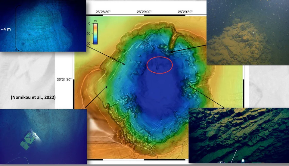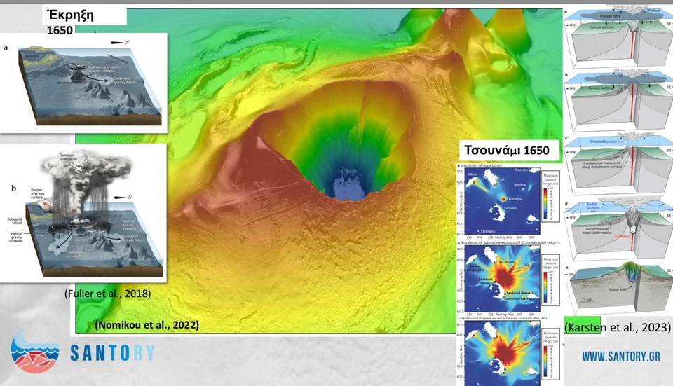 Η καθηγήτρια Γεωλογικής Ωκεανογραφίας του Τμήματος Γεωλογίας και Γεωπεριβάλλοντος του ΕΚΠΑ, κατά τη διάρκεια της αναλυτικής ενημέρωσης μέσω διαφανειών στο υπουργείο Κλιματικής Κρίσης και Πολιτικής Προστασίας, τόνισε μεταξύ άλλων ότι και τα τρία ηφαιστειακά κέντρα έχουν χαρτογραφηθεί [Χριστιανά, Νέα Καμένα (Σαντορίνη) και Κολούμπο], ενώ παρέθεσε λεπτομέρειες για το τελευταίο.