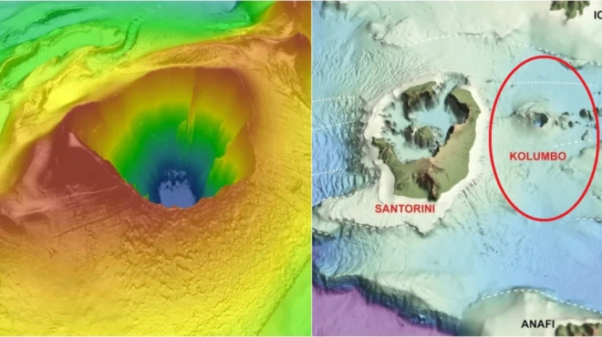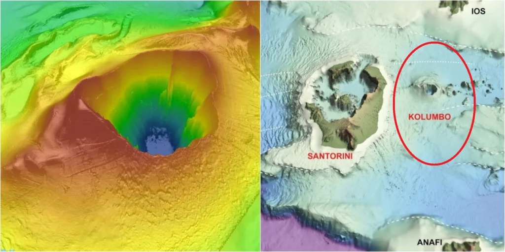 Όπως σημείωσε αρχικά, το υποθαλάσσιο ηφαίστειο Κολούμπος είναι μια τεράστια χοάνη. Το χαμηλότερό του βάθος είναι τα 500 μέτρα και το ρηχότερο -που είναι γνωστό στους ψαράδες- είναι τα 18 μέτρα. Στις 27 Σεπτεμβρίου 1650 έκανε μια από τις μεγαλύτερες υποθαλάσσιες εκρήξεις της Μεσογείου.