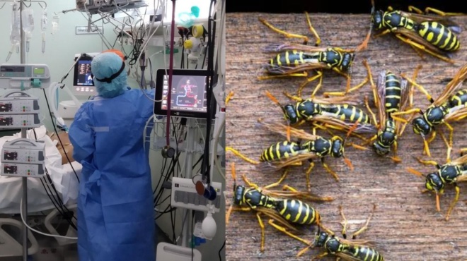Μάχη για να κρατηθεί στη ζωή δίνει ο 54χρονος χειριστής τσάπας, ο οποίος τσιμπήθηκε από σμήνος σφηκών, την ώρα που εργαζόταν στην Κόρινθο.