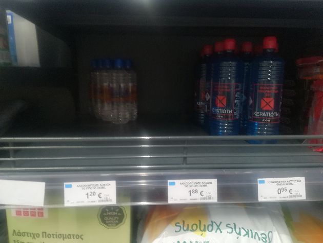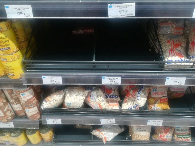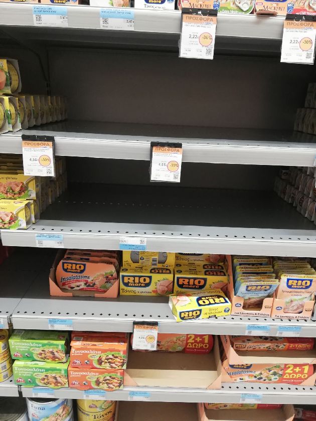 Τα ανάρπαστα μέσα σε μια μόλις ημέρα προϊόντα είναι τα εξής: λάδι, απορρυπαντικά, χλωρίνες, όσπρια, ζυμαρικά, ρύζι, καφές, οινόπνευμα καθαρό αλλά και φωτιστικό (λόγω της έλλειψης πια αντισηπτικών) γάλα μακράς διαρκείας, χαρτιά υγείας, χαρτοπετσέτες, ακόμα και ψωμί του τοστ.