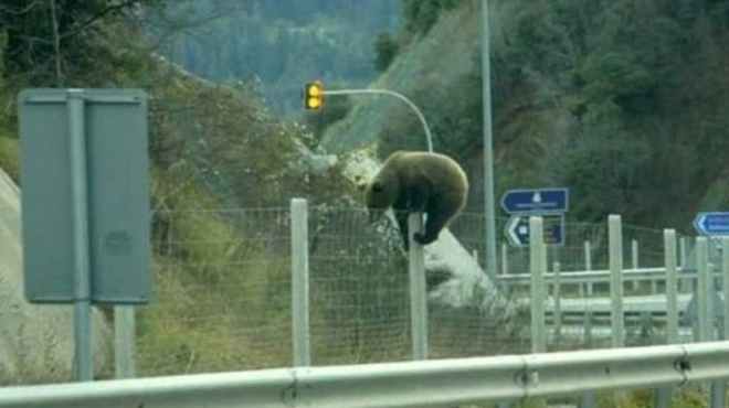 Μία μεγάλη αρκούδα να προσπαθεί να περάσει τα προστατευτικά σύρματα και να διασχίσει το δρόμο, είδαν οι διερχόμενοι από την Εγνατία Οδό, το πρωί της Τετάρτης.