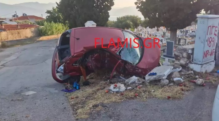 Το αυτοκίνητο βρέθηκε στην κυριολεξία πάνω στην μάντρα και αιωρείτο πάνω από τους τάφους. Ο θάνατος του 25χρονου οδηγού ήταν ακαριαίος. Οι πυροσβέστες τον απεγκλώβισαν και διακομίστηκε στο νεκροτομείο του νοσοκομείου Ρίου.
