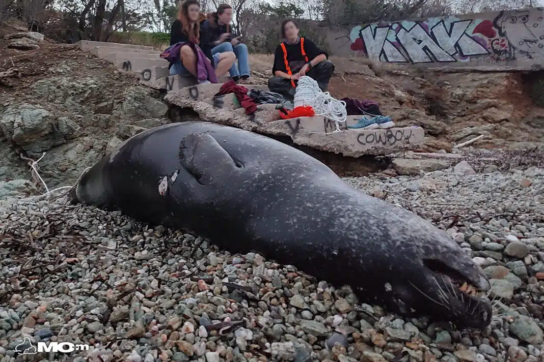 «Παρά τις δύσκολες καιρικές συνθήκες που επικρατούσαν στην Αττική εκείνη την ημέρα, η ομάδα της MOm προσέγγισε άμεσα το σημείο για αυτοψία και δειγματοληψία. Με βαθιά μας λύπη διαπιστώσαμε ότι η φώκια -ένα ενήλικο αρσενικό άτομο- είχε πέσει θύμα ηθελημένης θανάτωσης με χρήση κυνηγετικού όπλου», αναφέρει η οργάνωση.